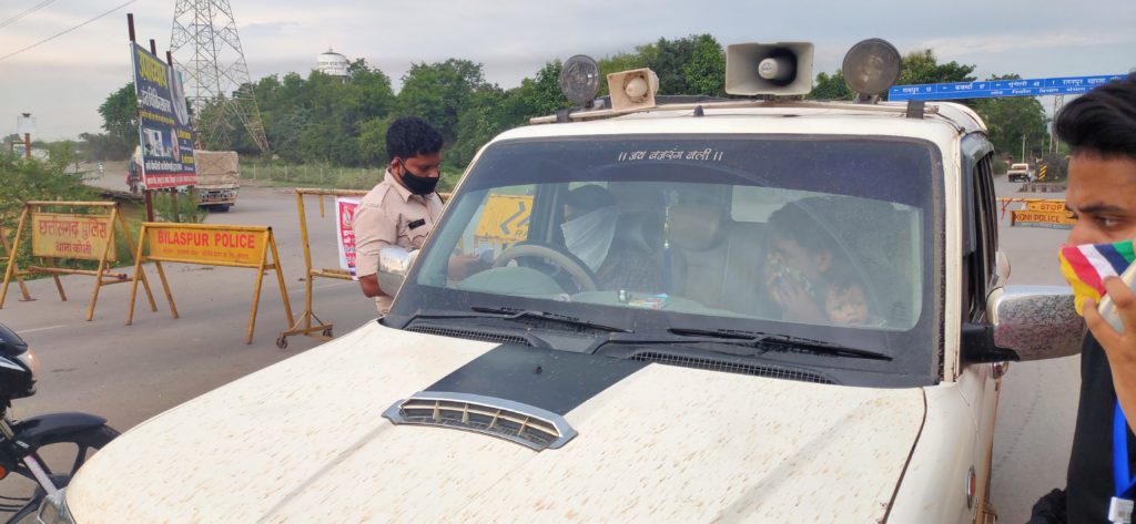जैसे की हम सबको पता है विगत कुछ दिनों से हमारे बिलासपुर शहर में कोरोना के मामले बढ़ते ही चले जा रहे हैं इस बीच अपने घर परिवार को छोड़कर पुलिस प्रशासन तत्पर हमारी सेवा में लगी हुई है न्यूज़ नेशन 24×7 की टीम द्वारा मौके पर पहुंचने पर देखा गया की कोनी पुलिस पूर्ण निष्ठा से अपना कार्य कर रही है तथा रतनपुर सेंदरी मार्ग से आने वाली व बिलासपुर से रतनपुर सेंदरी की ओर जाने वाली सभी वाहनों का क्रमबद्ध तरीके से जांच जाने व आने का कारण देख कर ही उन्हें आगे जाने दिया जा रहा है बिना पास या बिना किसी मुख्य कारण के किसी को भी जाने आने का कोई रास्ता नहीं है।। मौके पर मौजूद कोनी थाना एसआई राम चंद्र साहू जी द्वारा बताया गया कि वह व उनकी टीम दिन रात लोगों के लिए अपनी सेवा प्रदान कर रहे हैं व करते रहेंगे।